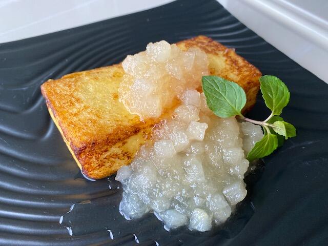 「ホテルオークラのフレンチトーストに和なしのジャムを添えて」です。