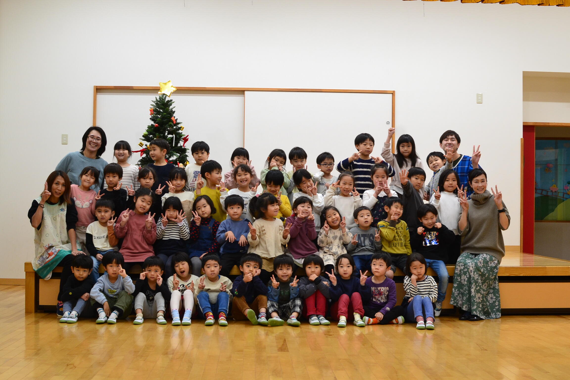 年長のひまわりぐみ。年中のさくらぐみのこどもたちが