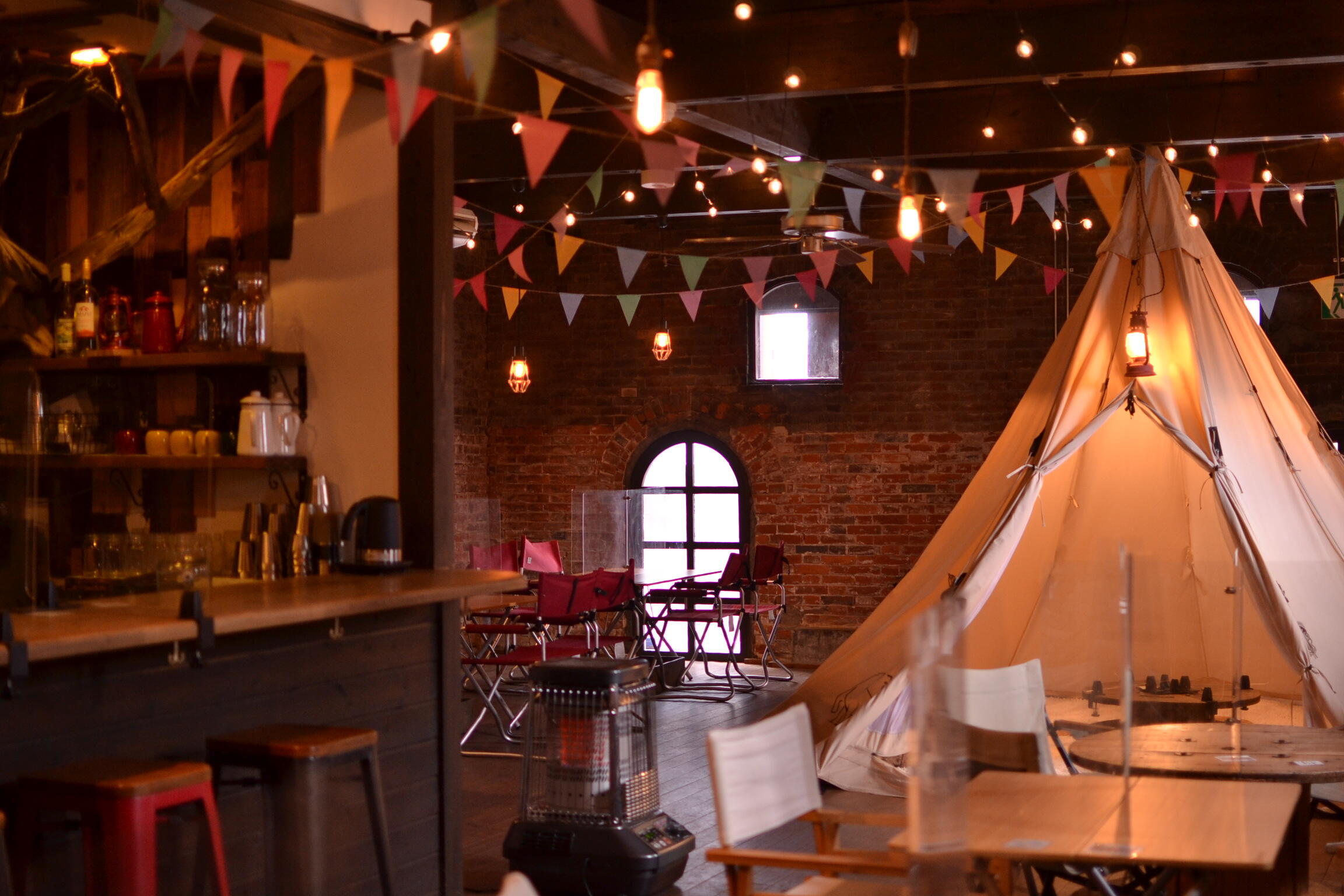 重厚感のある梁、そして煉瓦の壁、洋風の小窓。