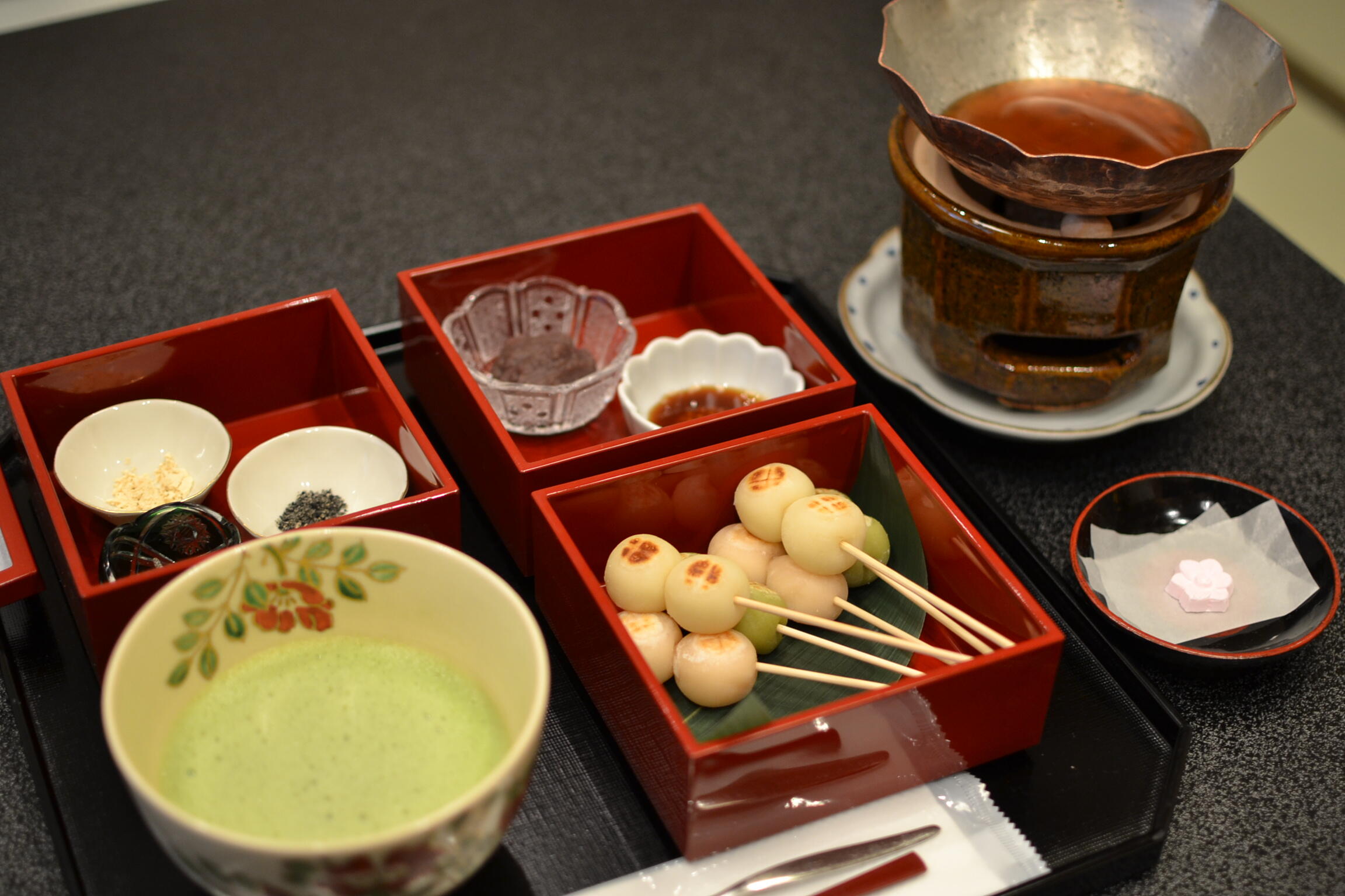 こしあん、黒蜜、きなこ、ごま、塩昆布