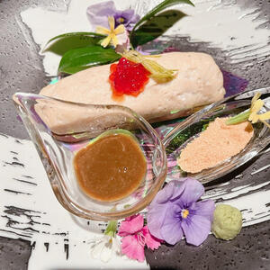 刻んだ南蛮エビと大口レンコンを混ぜ込み、蒸し上げた一品。