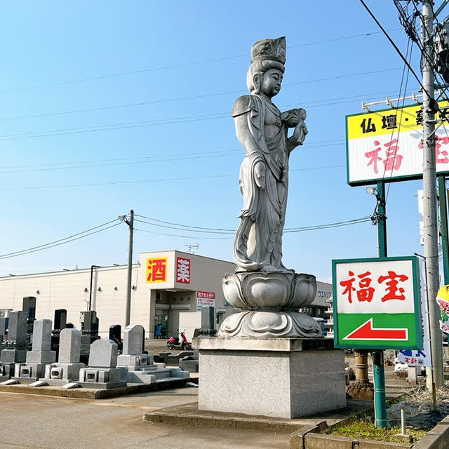 入口にはおよそ6メートルほどの迫力のある聖観音菩薩が目印となっています。