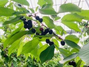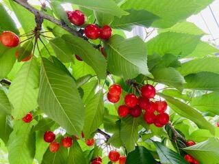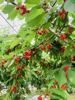中継では4種類のサクランボを食べ比べさせていただきました。