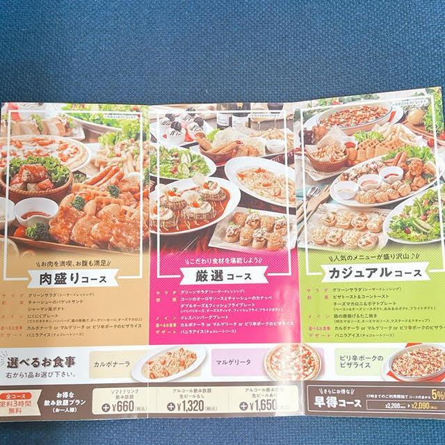 肉盛りコース、厳選コース、カジュアルコースから