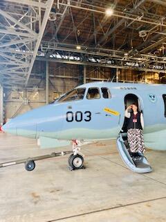 中継後、ジェット機やヘリコプターの内部を