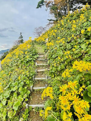 現在、寺泊では、つわぶきの花が見頃を迎えています。