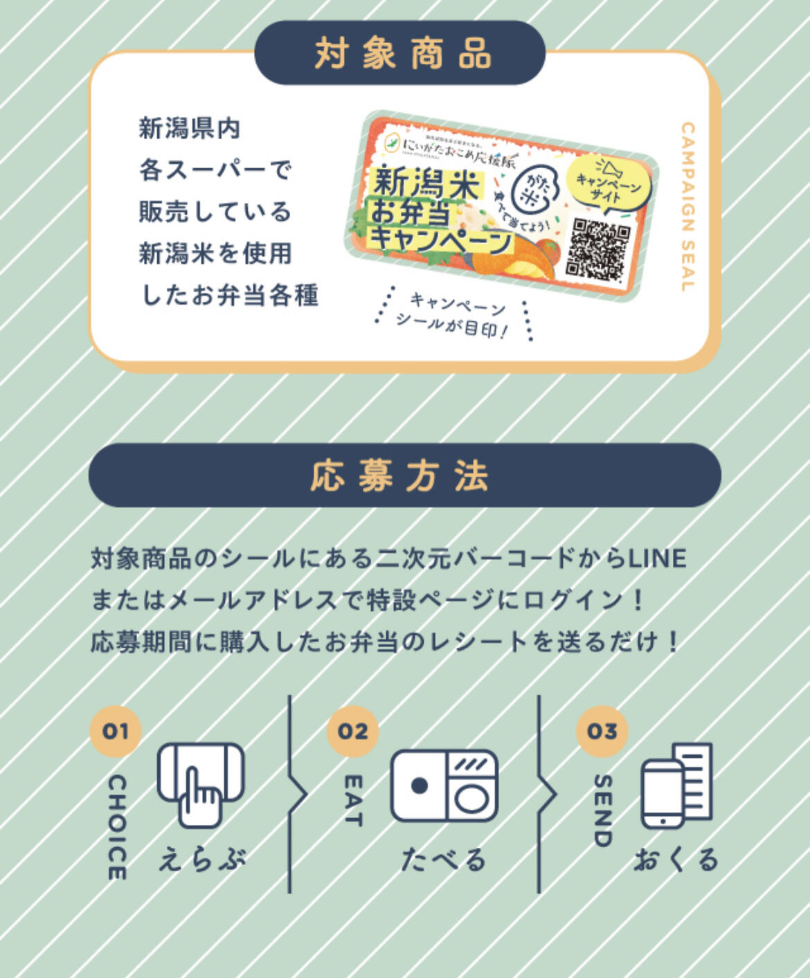 対象となる新潟米を使用したお弁当を購入し応募すると