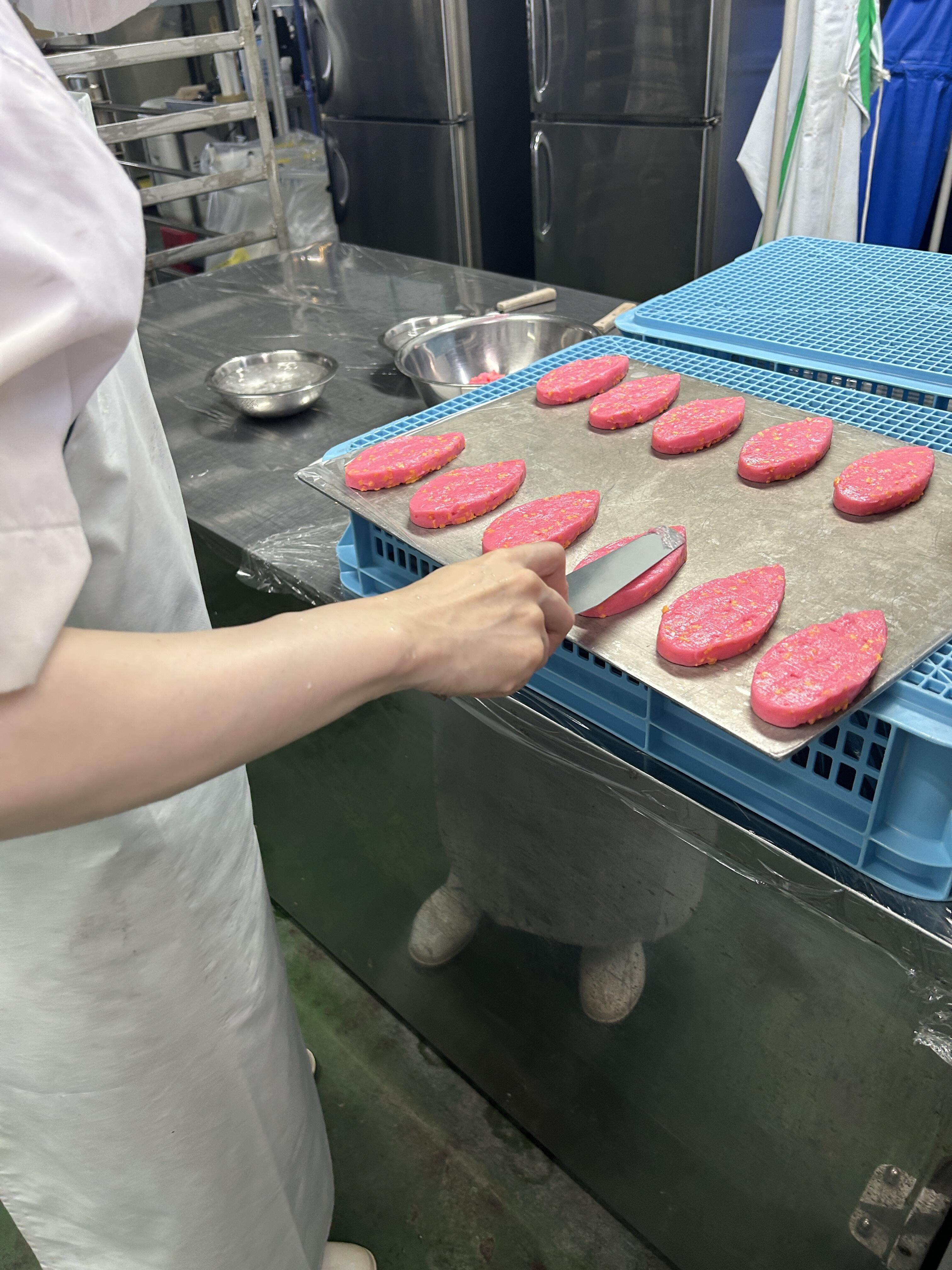 越後の笹かまぼこ「ピリ辛チーズ」が作られていました。