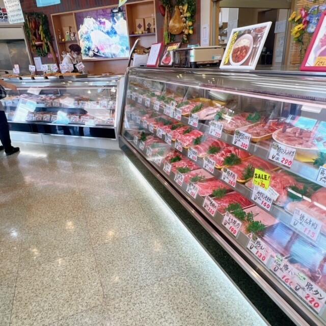 お店のショーケースは、お肉も惣菜も種類が多く,明るい雰囲気です。