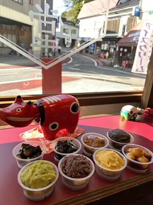 柳津温泉街の赤べこ通り「甘味処・赤べこ堂」