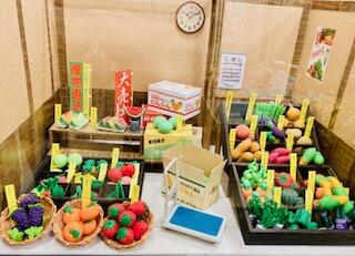 八百屋さんや和菓子屋さんも全部消しゴムで再現。
