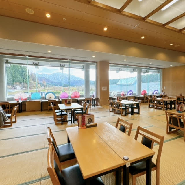 食堂からも粟ヶ岳を望むことができます。