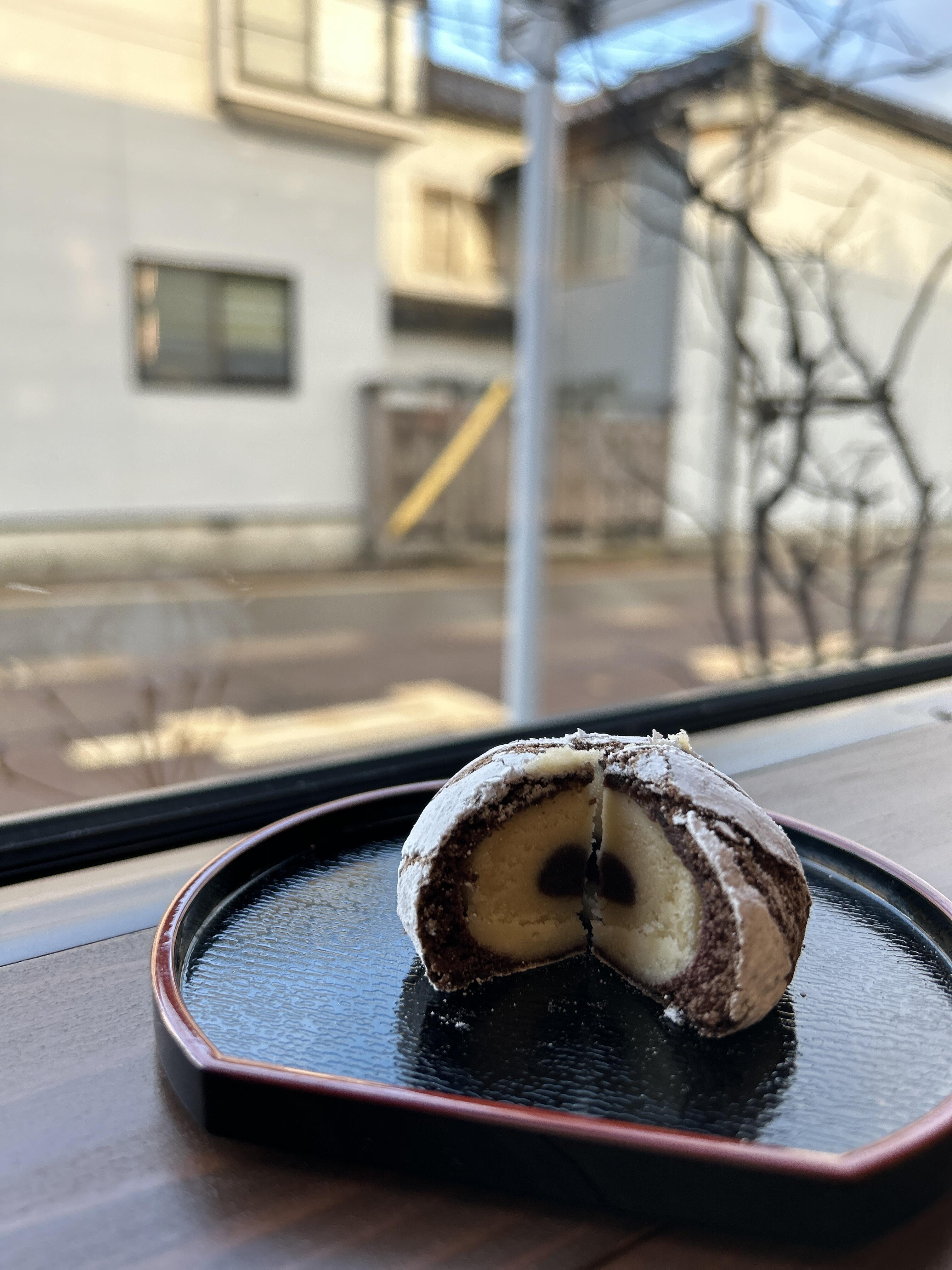 ココアの生地に、黄味餡、そして香り高いチョコレートと