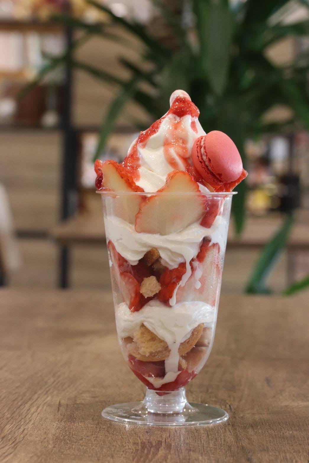 越後姫を贅沢に使ったパフェでSAKURA BAKERYのラスクとホイップクリーム、