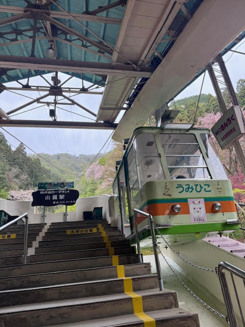 今日はロープーウェイの山麓駅から、うみひこに乗って山頂へ。