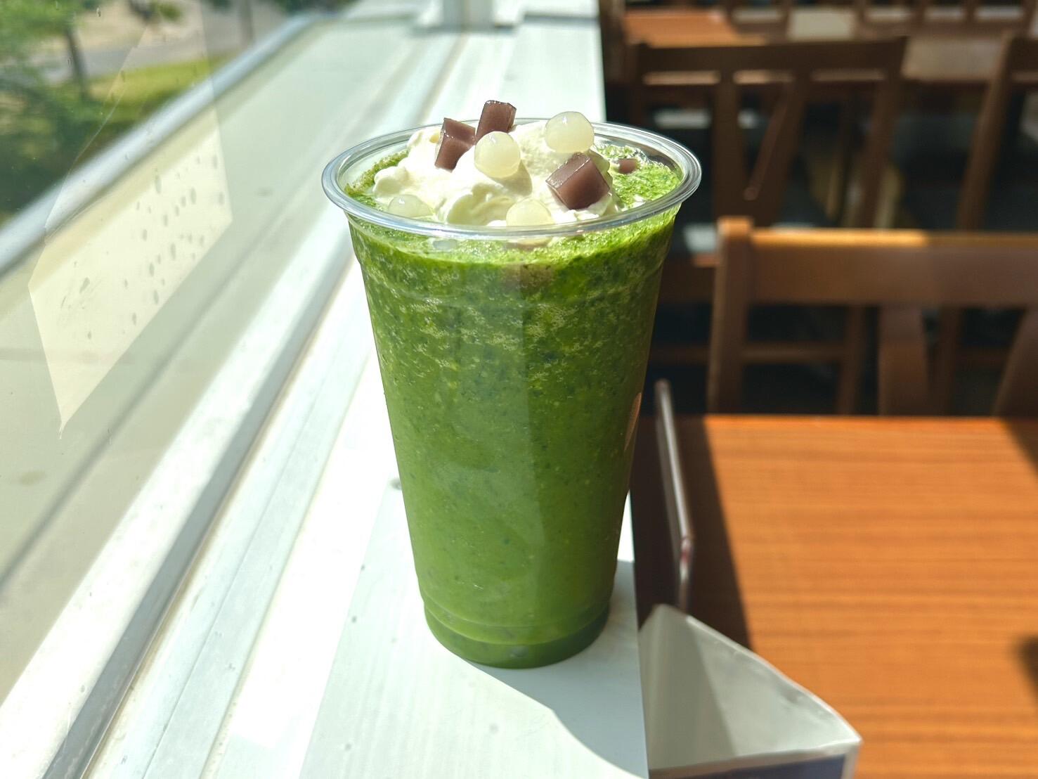 岡村シェフは、抹茶と新潟県産の枝豆をスムージーに