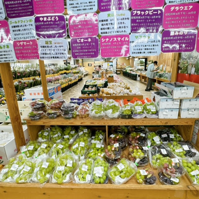 店内は,梨、巨峰、シャインマスカット、なす、秋きゅうり、