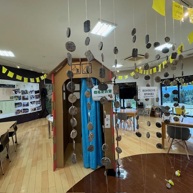 これは、子どもたちが避難所で、簡易トイレ用の黄色い袋を
