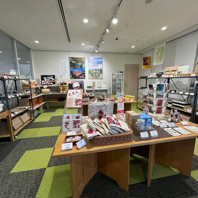 1Fは、地域総合案内窓口、お土産コーナーやカフェがあり、