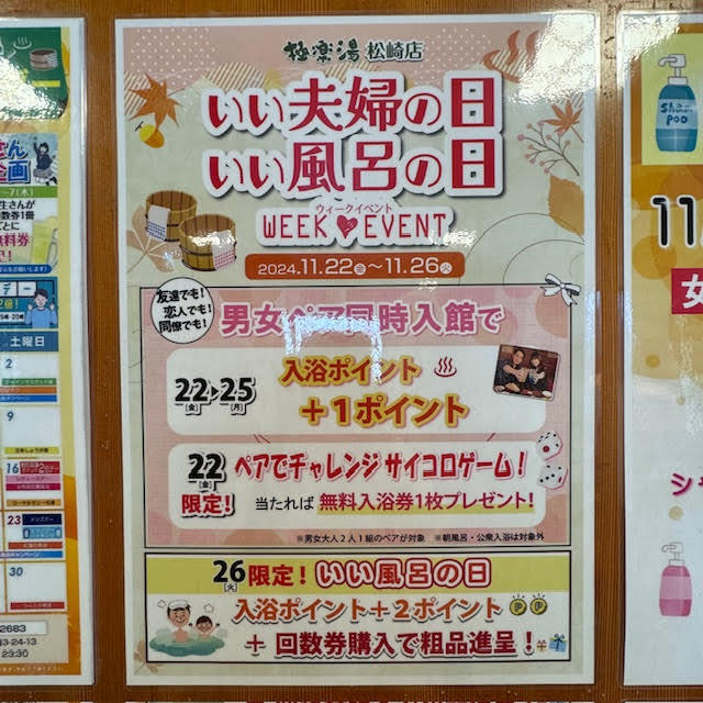 11月22日から26日まで「いい夫婦・いい風呂キャンペーン」と称して