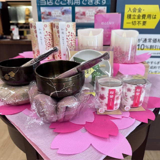 春の小物フェアも開催中で、桜や梅の香りのお線香、