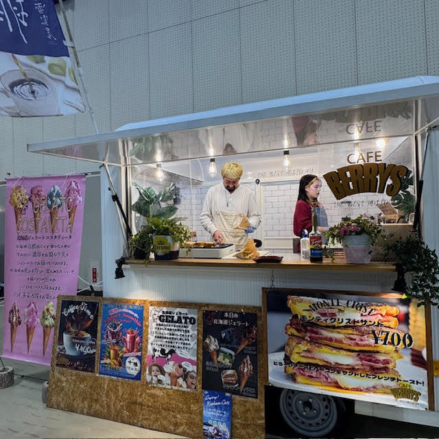 会場内飲食コーナーでは、カフェベリーズのチーズとベーコンの