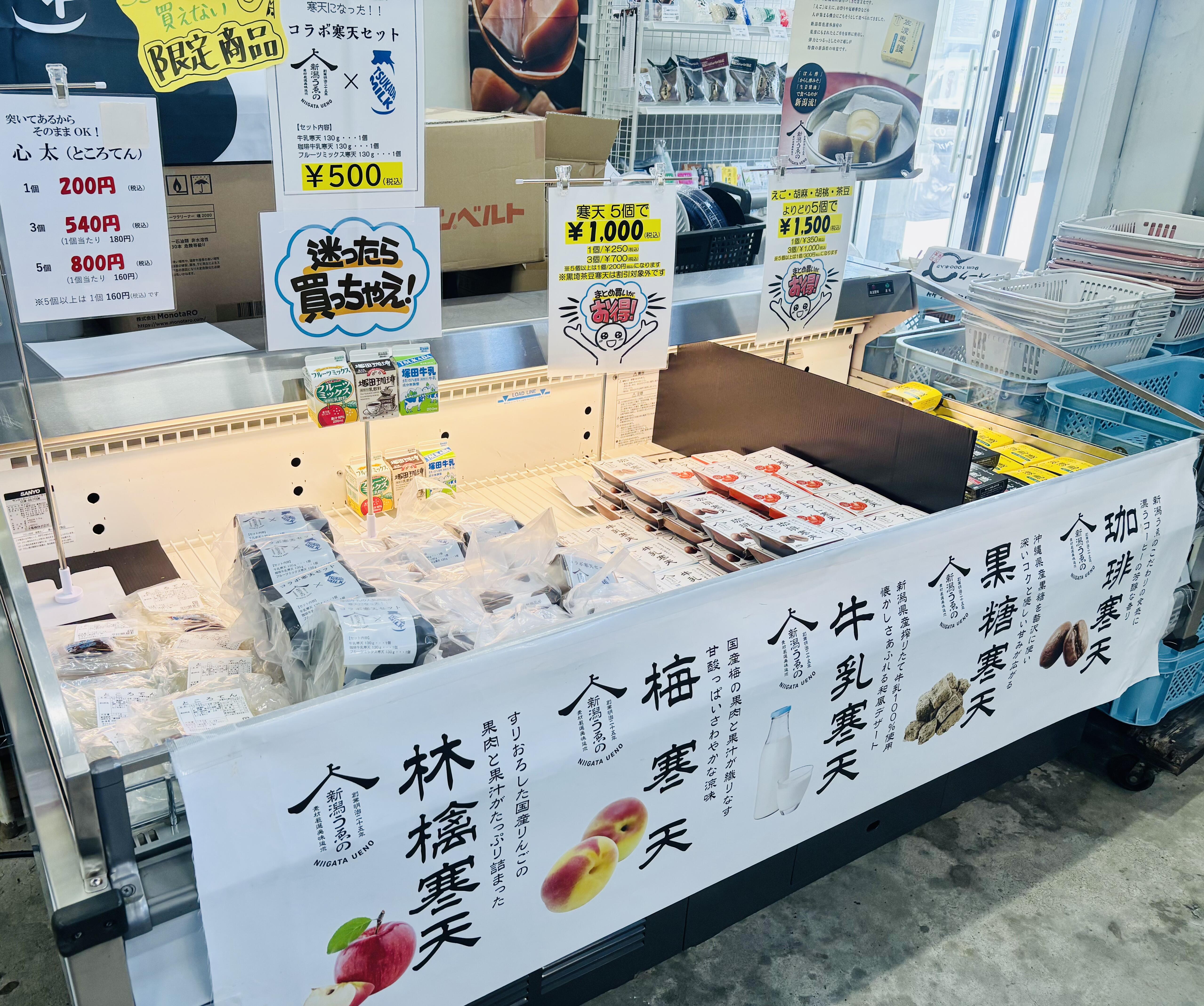 美味しいこんにゃくや寒天、胡麻豆腐、佐渡えごなどを