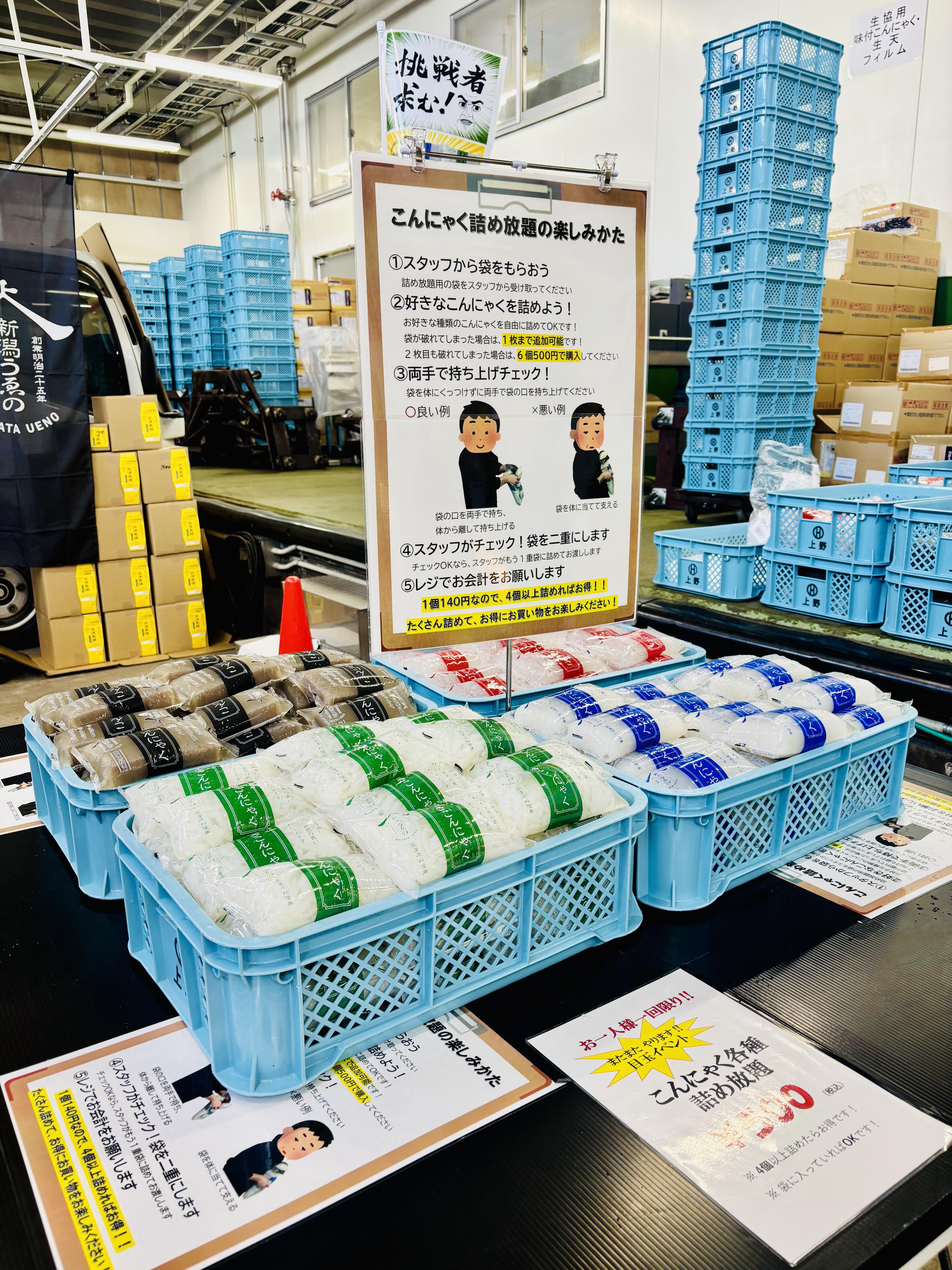 大人気の500円で行うことができる、こんにゃく詰め放題。