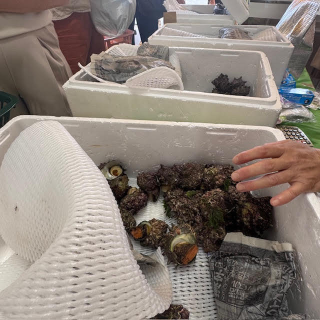 今日は佐渡の天然サザエが試食販売!佐渡の漁師 三浦さん直売!