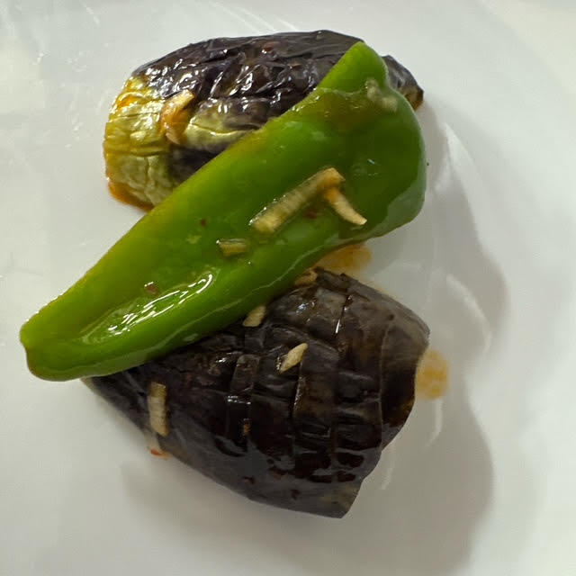 食欲そそる少しピリっとする「なすの揚げびたし」「黒酢入り肉団子」です。