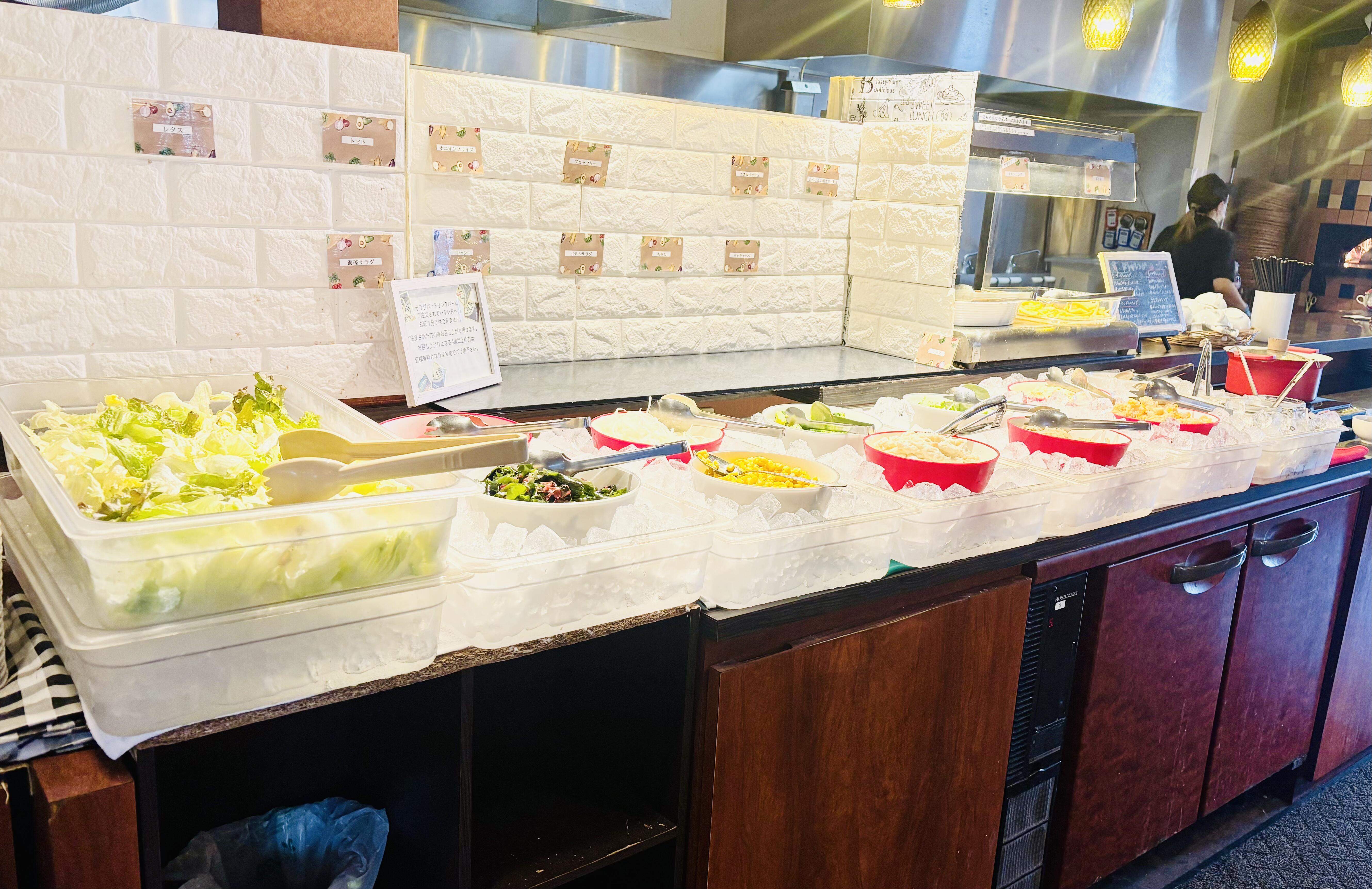 自慢の薪窯ピッツァや選べるパスタ、サラダバーの後に