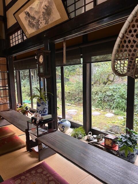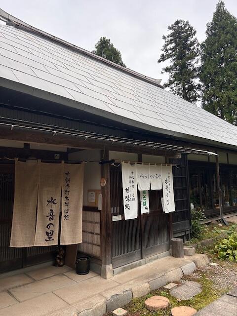 お庭を眺めながら手打ちそばをいただく事ができます。![]()