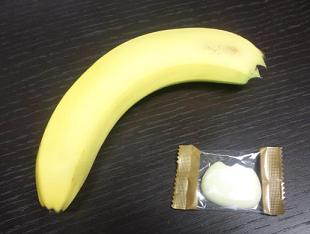 目の前に ワダムがくれたバナナと、大好物のホワイトチョコ。
