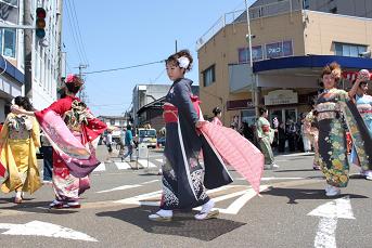 そして、歩行者天国のエリアが登場して、「ストリートきものショー」も行われ