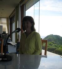 佐渡汽船観光のガイドさん、すみちゃんも、優雅に佐渡をご案内。