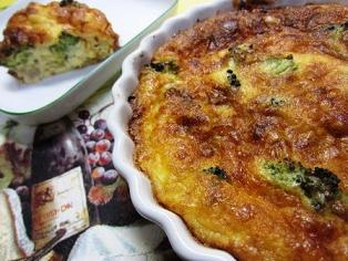 2)ココット型に1)を入れ、ブロッコリーを並べてチーズを散らす。