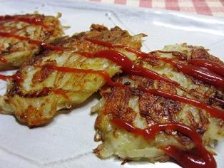 フライ返し等で形を整えながら色よく焼いたら裏返す。