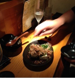 お豆腐好きの北雪酒造 羽豆社長は揚げじゃこと丘ひじきの冷奴を。