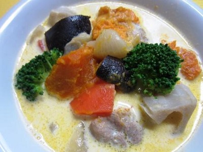 4)Aをよく混ぜて3)に加えて軽く煮て、味を調える。