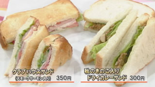 スモークサーモン入りクラブハウスサンドと、きのこ入りドライカレーサンドです。