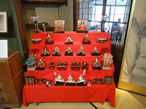 入り口のすぐ近くにある和室に豪華なひな人形がかざってあります。