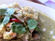 タイ米にエビやパプリカ、小松菜などを混ぜ、