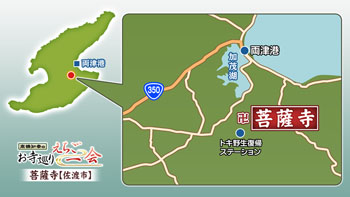 観音堂には聖観音菩薩を祀っているが、以前は両津湾を一望できる観音山に安置されていて海上しけの前に、光を放ち漁船に知らせをしたと伝えられ、別名(舟止め観音)と言われている。聖観音菩薩は、平安時代の作と言われ文化財に指定されている。