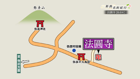 開山は1458年、室町時代。本尊は阿弥陀如来。 本堂は、度重なる火災から寺を守るために鉄筋の建物に変わりました。 寺の宝は、弥彦村の文化財に指定されている山門と鐘楼で、山門は太い梁や柱に支えられたつくりで 各所に渦巻型彫刻や獅子頭などの彫り物が多く見られます。