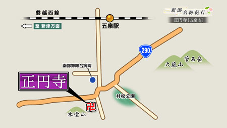 本尊は不動明王。越後三十三観音霊場の三十一番札所として多くの参拝者が訪れる。他にも考古学的価値のある五輪線刻塔婆を大切に保護している。