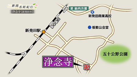 国指定名勝「五十公野御茶屋庭園」近くの寺院。かつて良寛が訪れ、寺から見た情景を詠んだ詩が掛け軸として飾られている。