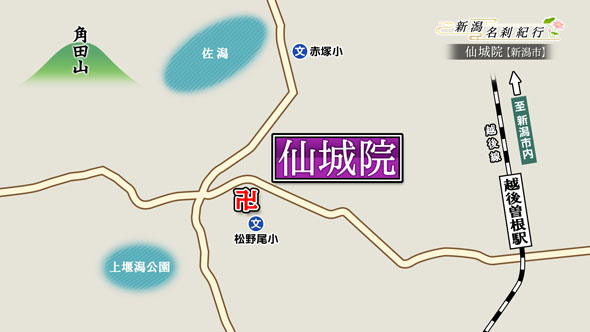 脇侍に日光菩薩と月光菩薩。 また三面六臂(さんめんろっぴ)の大黒様も祀られている。 3つの顔と6本の腕を持った大黒様で右に弁財天、左に毘沙門天を従えている。越後薬師霊場第十六番札所。