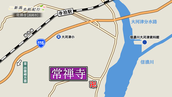 大河津分水路の側に建つ寺。先祖は石川県徳田大津から越後へ移り寺を開いたと伝わっている。