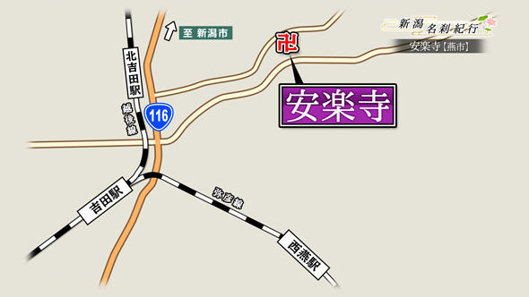 弥彦山を背景に美しい田園が広がる燕市米納津地区。かつては米の集散地として栄えた。米農家と共に歩んできた寺である。