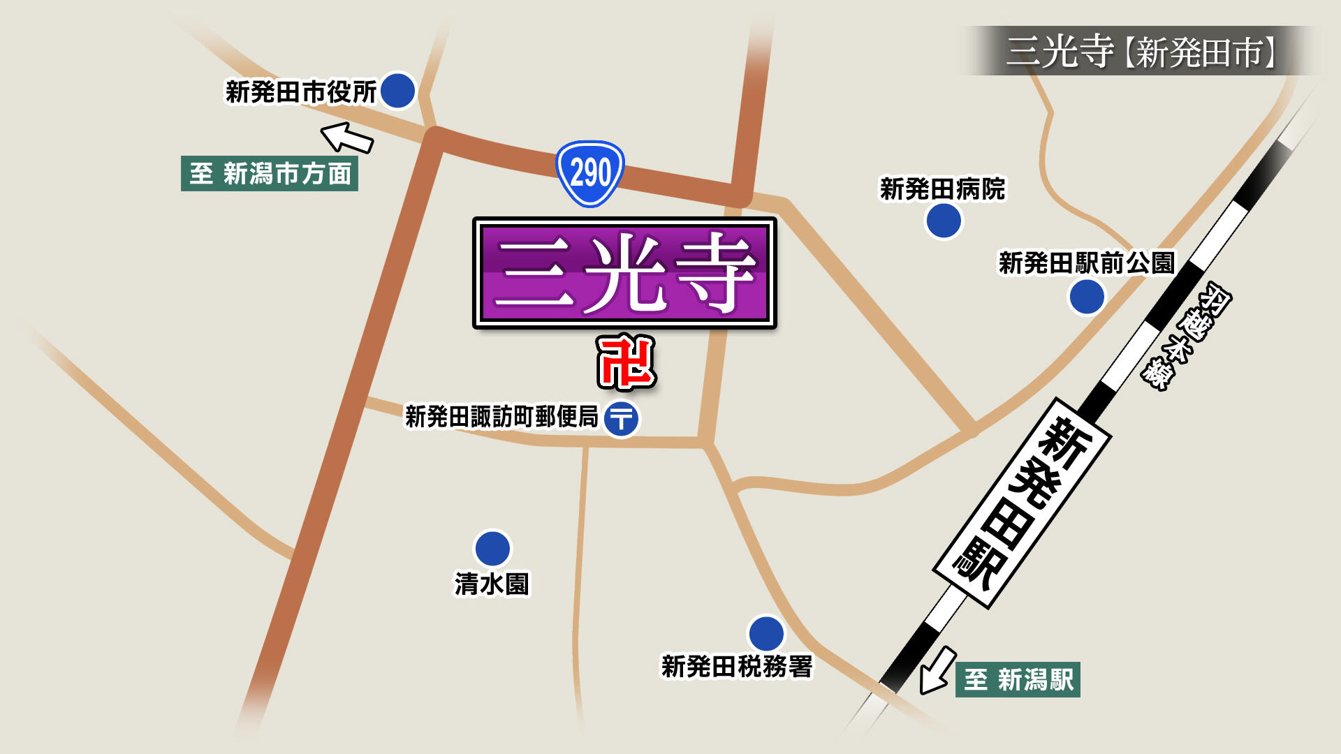 名前の由来は移転前の地名「川東三光村」からきており、また三つの光「慈悲・慈愛・智慧」を指している。